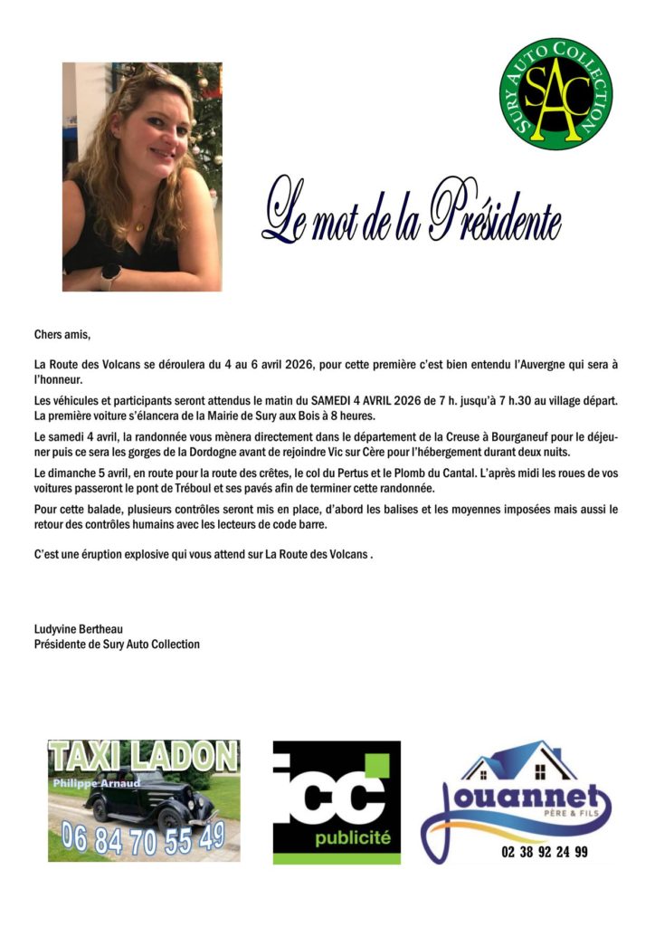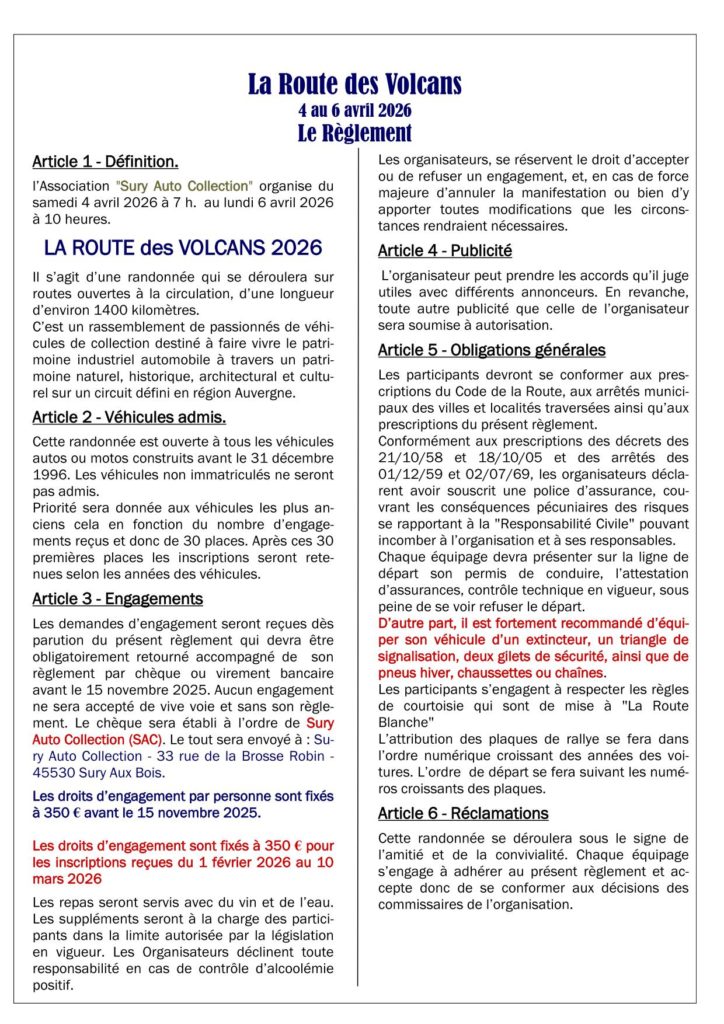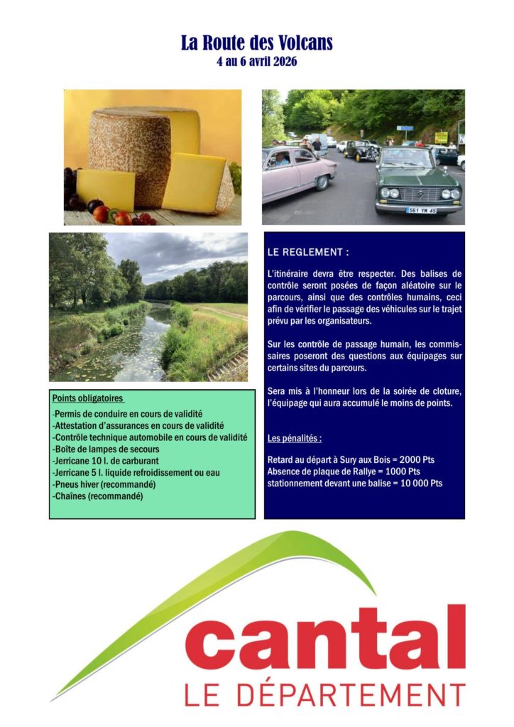 La Route des Volcans – du 4 au 6 avril 2026 Posted on 30 janvier 202630 janvier 2026 DOSSIER COMPLET L.R.V. 2026-Télécharger